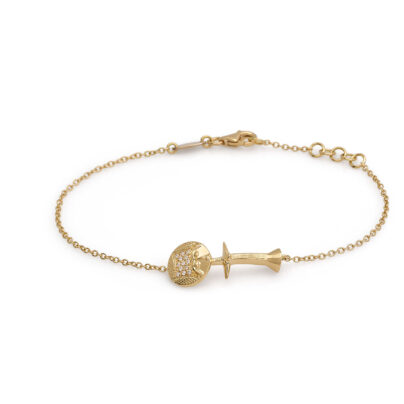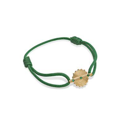 Poupée Ashanti. Bracelet en or jaune et cordon rouge.